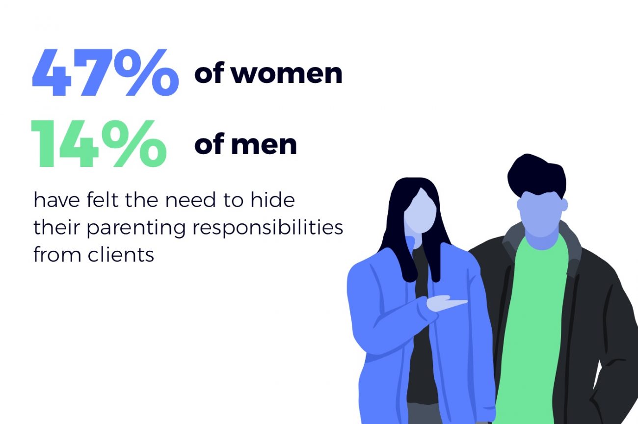 Although the “motherhood penalty” is today considered less of a reason for the gender pay gap than it was in 2017 (40 percent), freelancing moms still feel the pressure. Nearly half of all women surveyed (47 percent) have felt the need to hide their parenting responsibilities from their clients for fear that it will impact their pay. That’s compared to 14 percent of men who have felt the same.