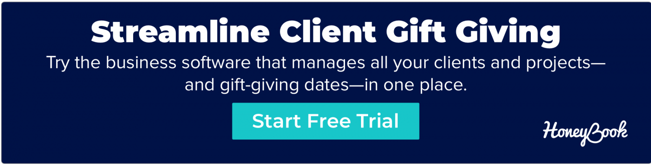Timed correctly, gifts can help deepen relationships with your clients, help projects run smoothly, keep your brand top of mind and win you repeat or referral business. And using tools like HoneyBook can help streamline the gift-giving process, making it easy to deliver scalable, personalized customer experiences for each and every client.