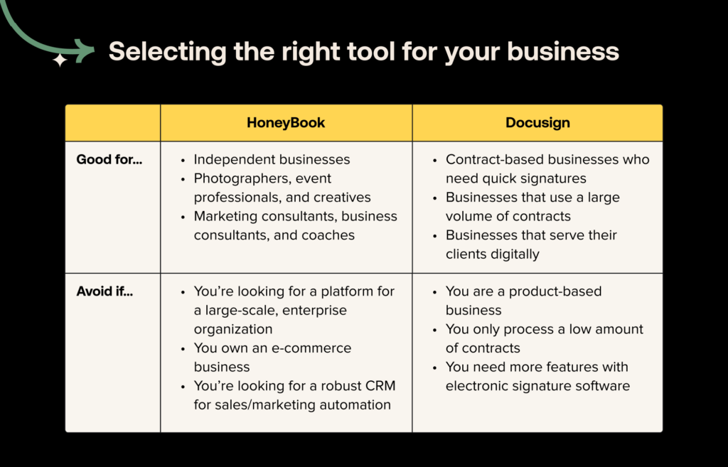 I wanted to compare Docusign to HoneyBook to see how it stacked up to an all-in-one tool. Read more to see what Docusign is best for and if HoneyBook offers enough contract management features to replace Docusign altogether.