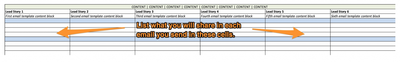 Then, for each email, you’ll see columns for “Lead Stories.” These are simply the individual content pieces you’ll include in the email.