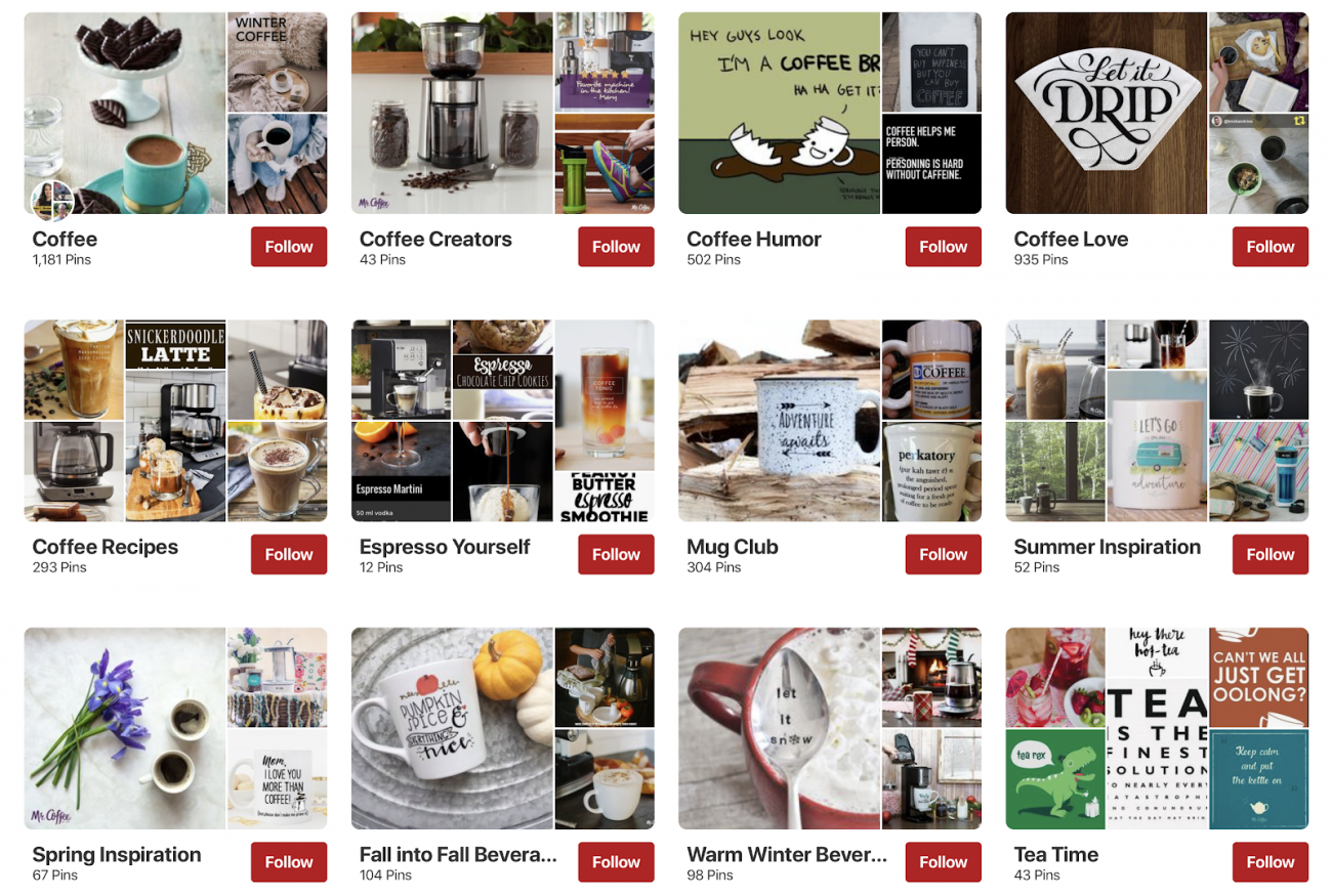 - Boards: a way to categorize and organize Pins (Pinterest posts)