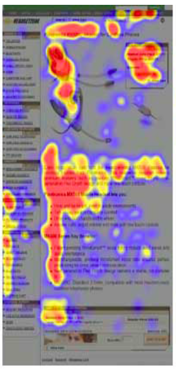 The red parts are areas that you focus on the most, down to yellow and then blues with the least focus. This is what people are looking at on a web page.