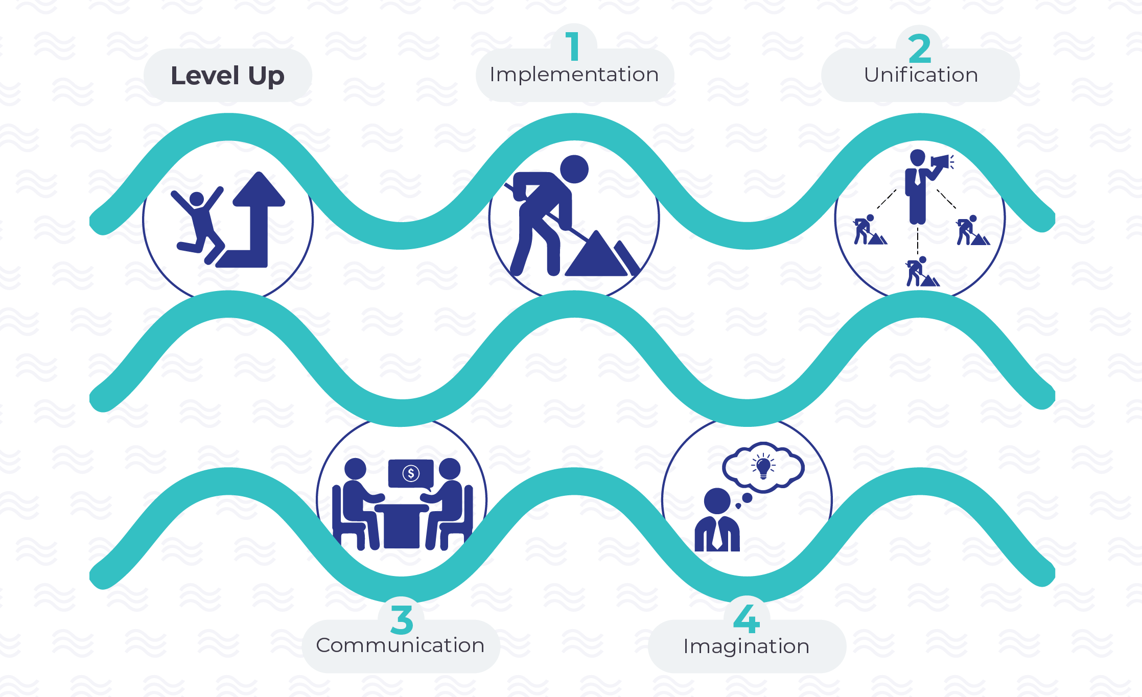 The 4 Levels of Value are Implementation, Unification, Communication and Imagination. As I describe these levels, take a moment and think about where you are currently at. Then, dream a little and point to where you want to go.