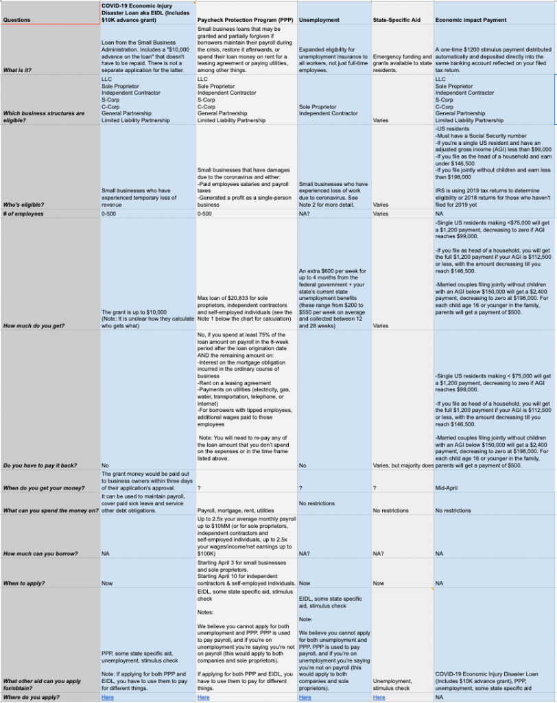 Disclaimer: The information about these programs is changing rapidly. Like you, we’re doing our best to interpret the structure of each of these new programs, but without hard guidance, a lot of available information is based on interpretations of how these programs will work. Please keep this in mind and speak to a representative at your local lender or the SBA for more details.