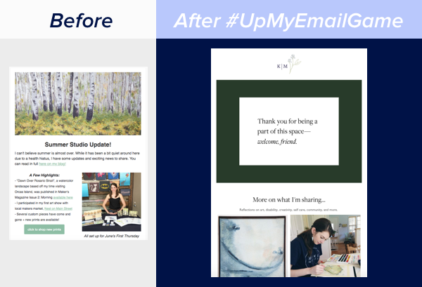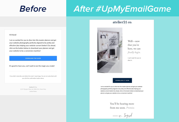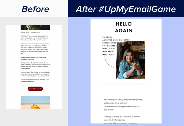 We’ve loved seeing all the email magic everyone’s created in the #UpMyEmailGame Challenge. While the Instagram challenge component is over, it’s not too late to sign up and get 12 free email templates for your business and one month free of Flodesk.