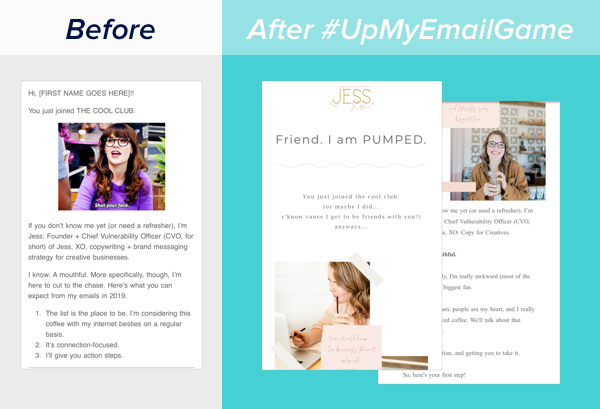 After the #UpMyEmailGame challenge, now I have new emails, including one where I introduce myself. Which I have never done nor thought to do. When people would subscribe I didn’t even send them a welcome email! 😳😳😳😳 I’m so glad I listened to the webinar.